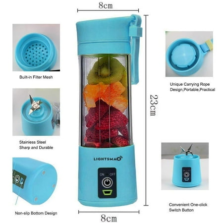 Portable Blender, Smoothie Juicer Cup - Six Blades in 3D, 13oz Fruit Mixing Machine